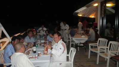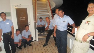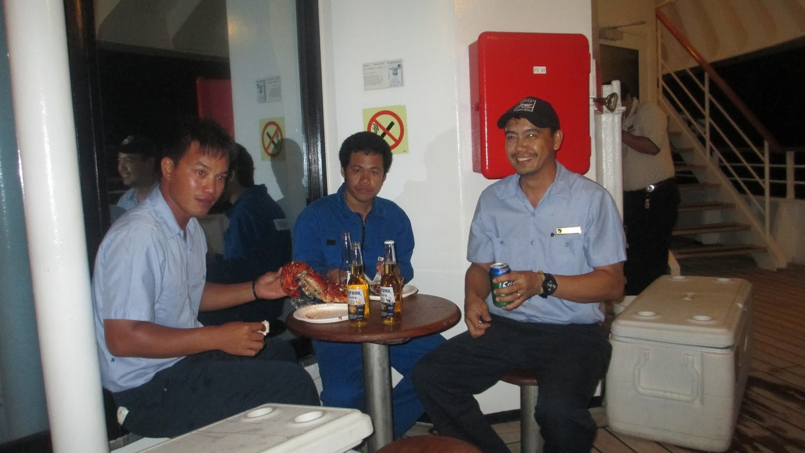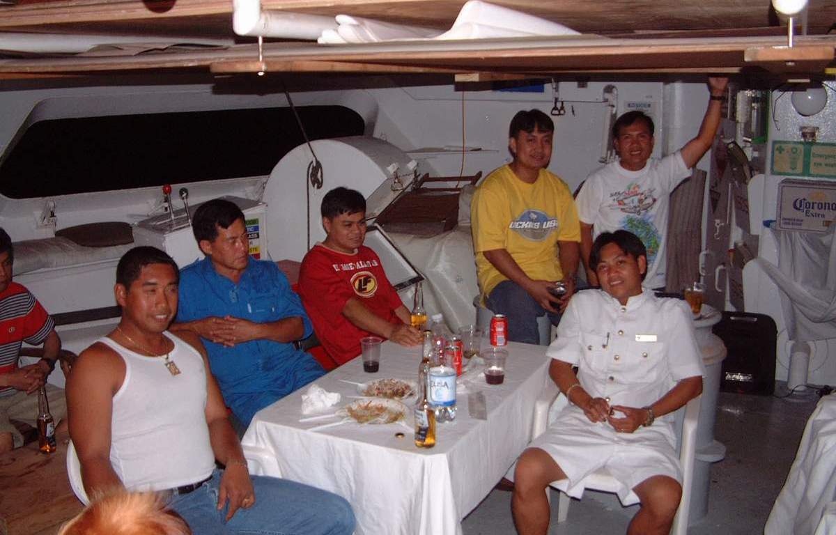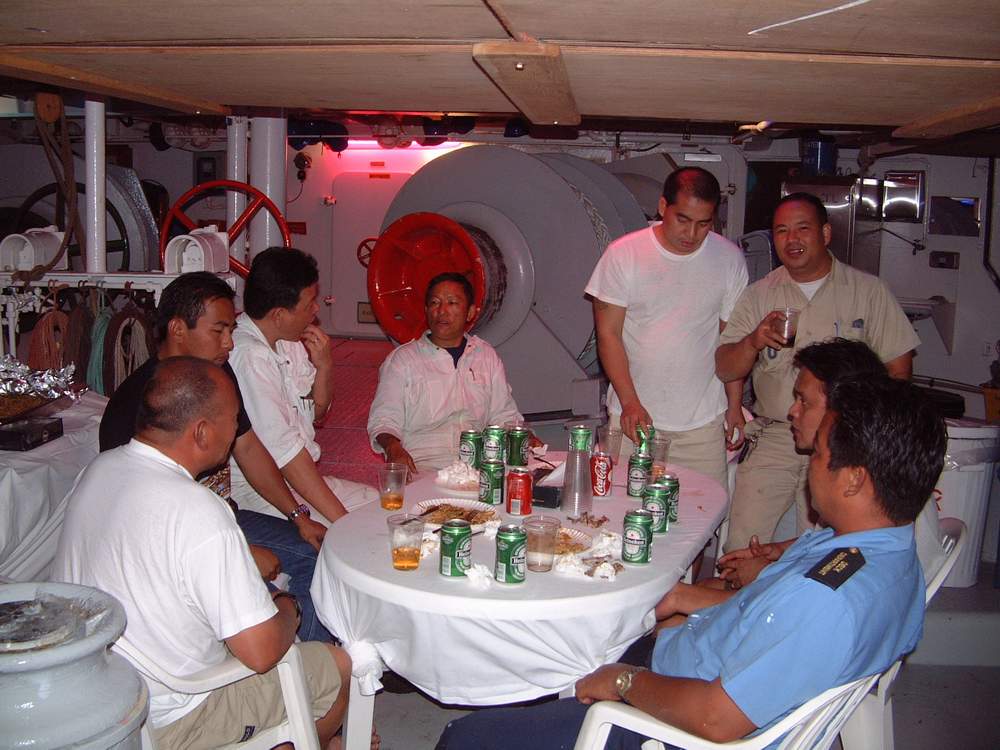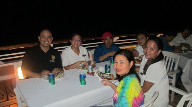 Socializing in the evening on the Crew deck.