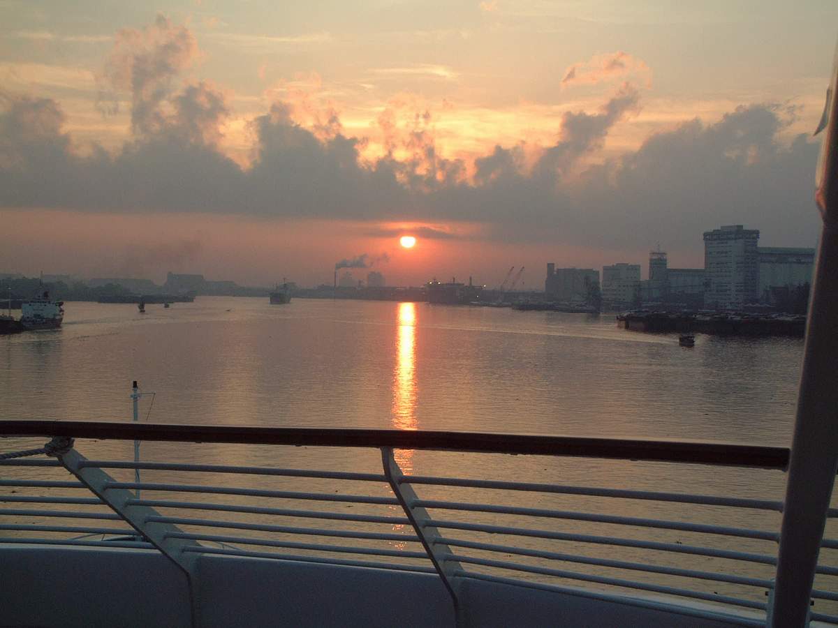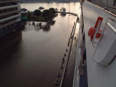 So we sailed up the river for a few hours actually, due to the relatively small size of our vessel (only 134 meters long). The bigger cruise ships normally would be alongside in the cargo port of Laem Chabang, which is midway between Bangkok and Pattaya.