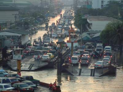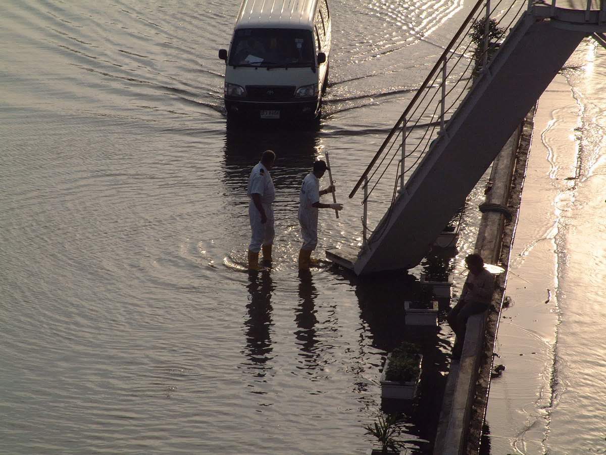 The Chao Phraya river is a so called tidal river, which means we also experience high and low tides in the river as well. This will sometimes (especially during rainy season) result in the water breaching the banks and flood the land masses.