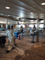 As soon as the gangways have been connected to the ship and it is safe to use them, a swarm with contractors and yard people come onboard. They all have their assigned work places already, and they move to their locations around the ship to setup the workshops and their on site Offices. All the contractors as well as the yard workers are under the same time pressure (deadlineds) as the ship itself, since next cruise has already been sold and no delays are acceptable. It is like the ship suddenly has become a human ant farm, with people moving everywhere, with a noise level in some of the areas you only find in construction sites.