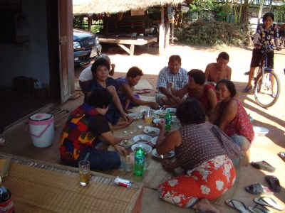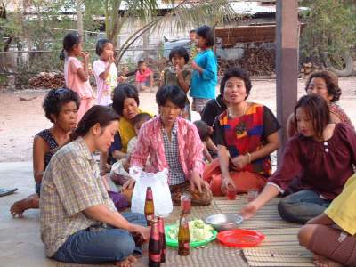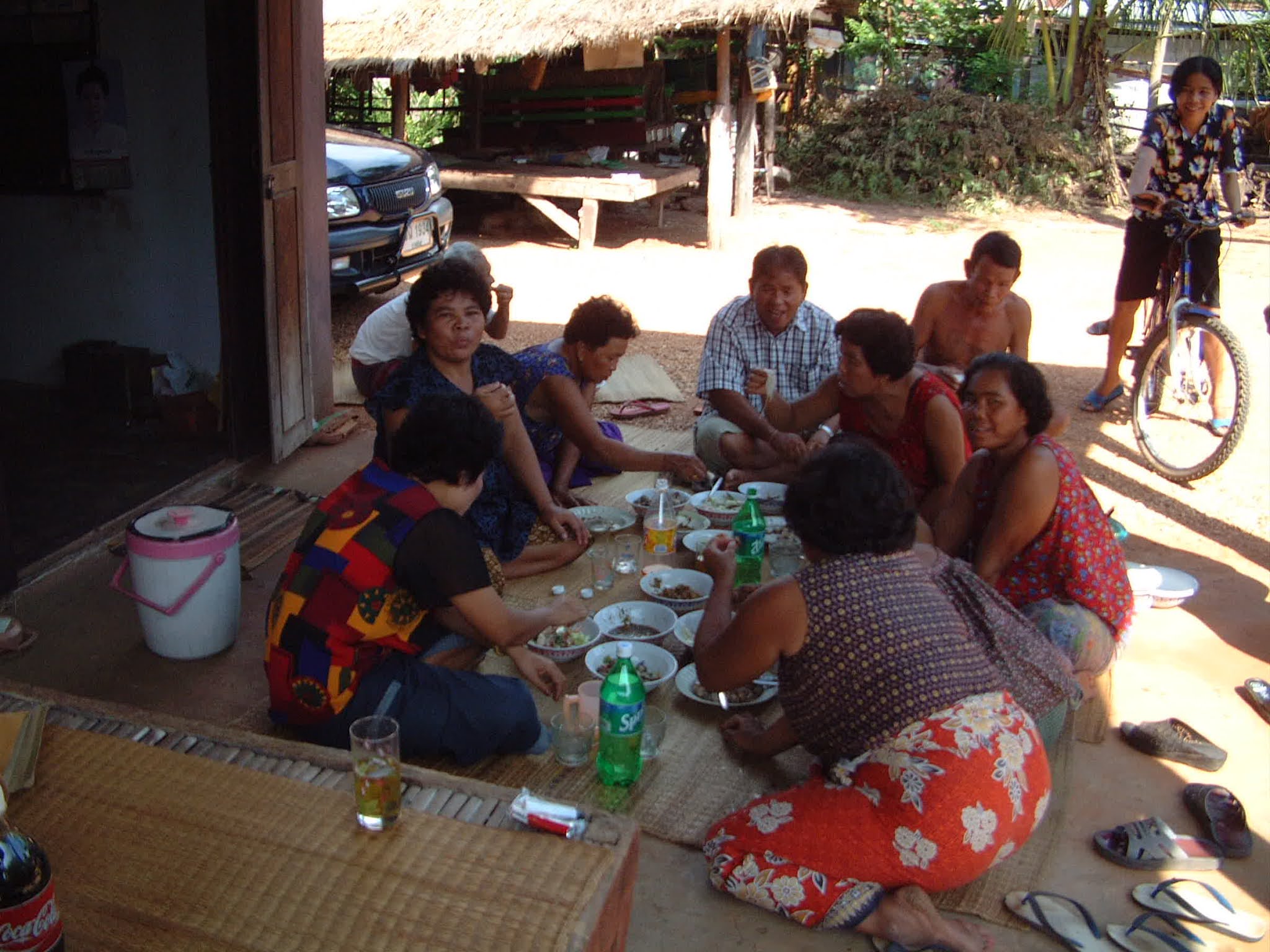As soon as the food/snacks and beverages arrive and they start socializing, you are kind of forgotten already. Just the kids really stare at you, a bit more shy maybe than the adults. The chatter is loud and very jolly. I learned later that they love to gossip in Thailand. Not only the ladies, but also the guys. So they eat and drink and talk, joke, taking pictures. It hit me how similar they were to the Filipinos in this regard. Very social, and always have food available when they get together. Of course, everything I tell here is regular stuff for anyone who has been to Isaan. But for a first timer such as myself, it was impressions after impressions.