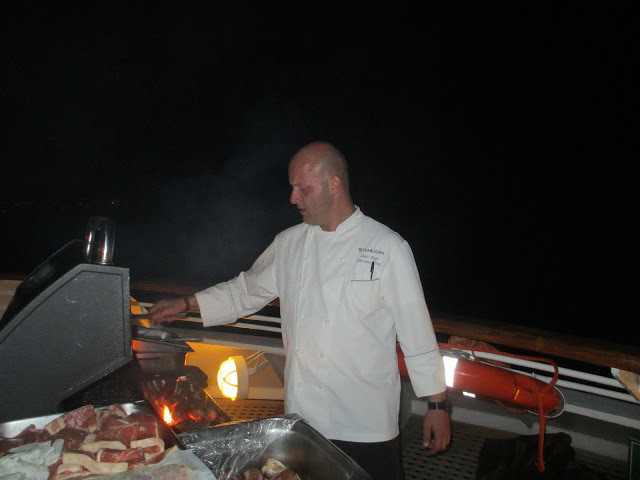 Chef De Cuisine John Pugh lending a hand during a crew B-B-Q night.