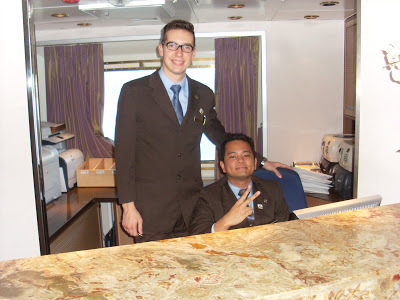 The Chief Purser and Crew Purser are two Administrative Officers who will take care of lots of paperwork and also finances. The Chief Purser is in charge of all the ship’s official documentation in regards to being “cleared” each time we arrive a port and new country. The Chief Purser is kind of the ship’s Liaison Officer who will work closely with the various ship’s agents in the ports, as well as dealing with the Officials such as Immigrations officers, customs officers, etc. He/she will also be in charge of the ship’s official cash reserve which is carried around with us, which must sometimes be declared.