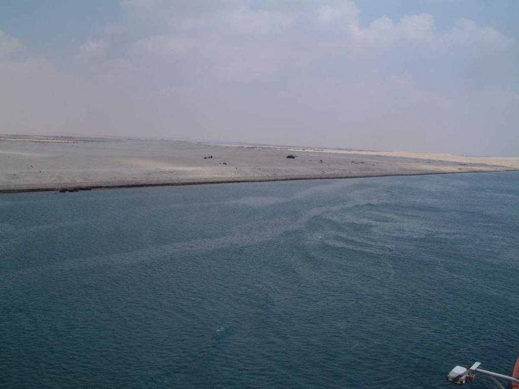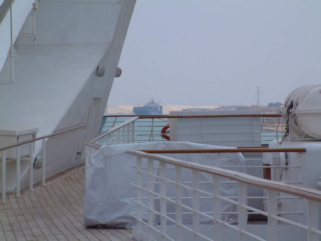 As already mentioned, the Suez Canal is by the way not that exciting. Maybe in the beginning when we sail past smaller towns and villages, and I remember I saw a lot of military installations, and lots of burned out equipment from the most recent conflict in the region. But after a short while, there is just sand, sand, and more sand for a long long time. Only interesting we see are the other ships, all kinds of types, passing us the other way, also in a convoy. Because we all must sail in convoys here.
