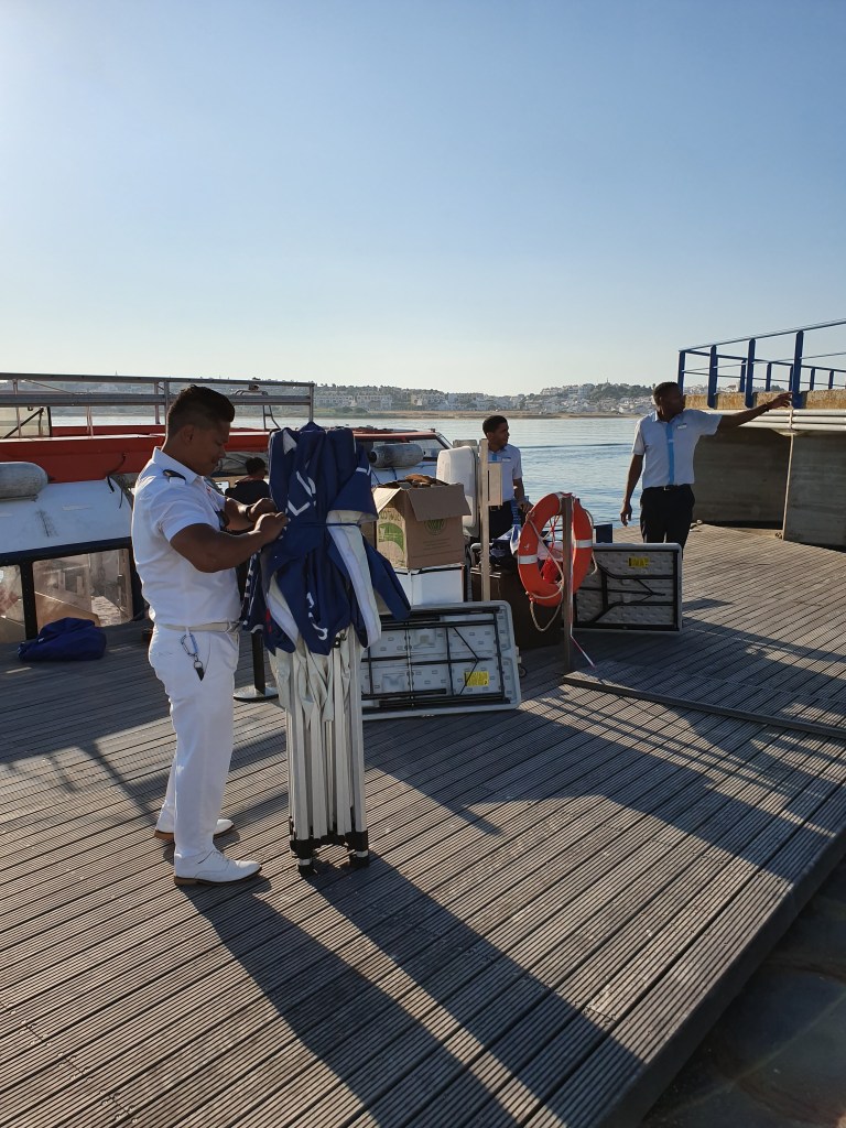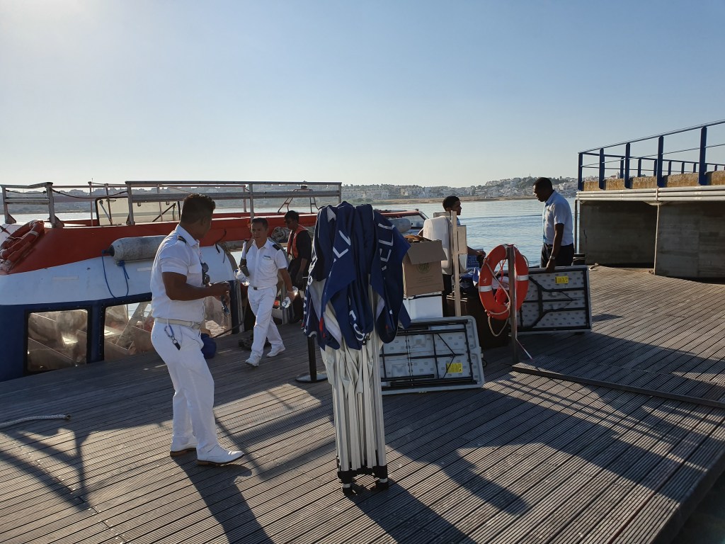 This video (above) is taken when we arrived the tender landing in Portimao, Portugal. The Crew rigging the platform.