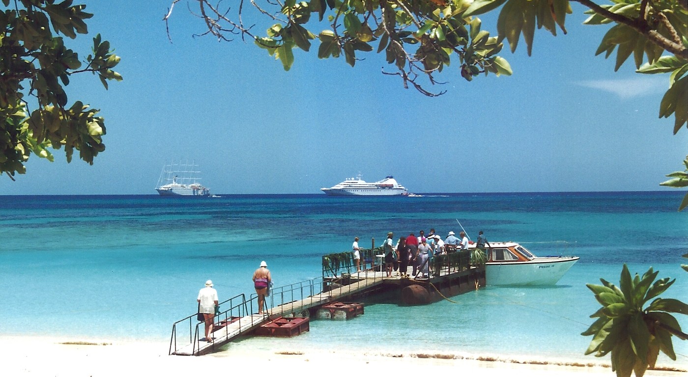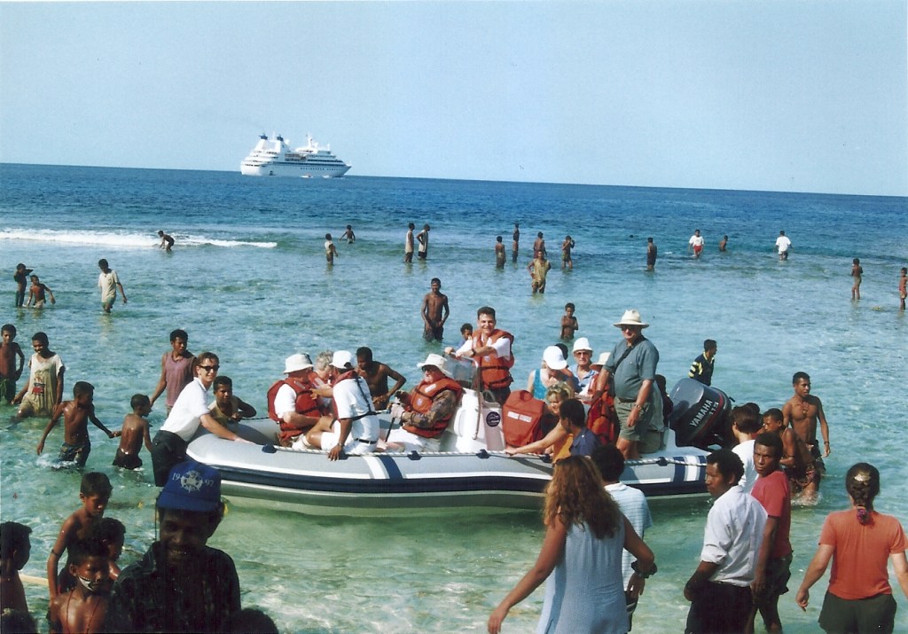 I will finish with the feature image again, which is a lucky shot taken when we were at anchor in Fiji Islands, South pacific. You can see us, the smallest ship on the right hand side, at anchor. And the shoreside tender platform we used. It was a lot of swell actually, which can not be seen on the picture.