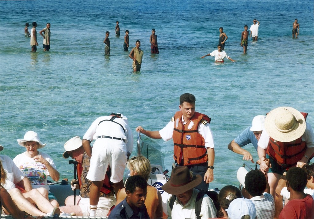 Above: Returning to the ship with a tender boat, from shoreside.