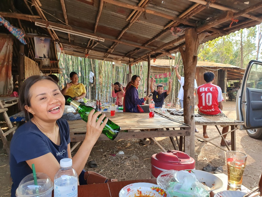 A few weeks before I went back to Europe, I decided to visit the in-laws one more time, to say see you later. As always there will be eating and drinking when people meet in Thailand. Something we visitors have learned after some time here. Actually, this socializing is very common all over the region.