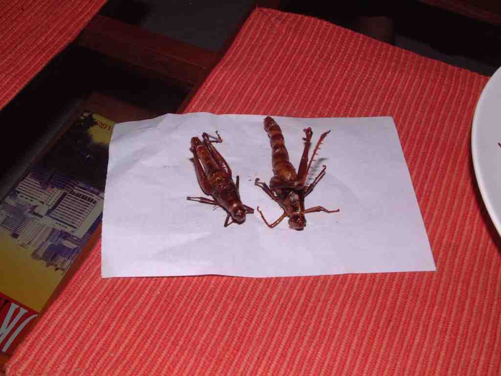 I have to admit, it took me some time before I even dared to taste one of these insects. It comes to a point when you spend a lot of time in Thailand when you are considered as a bit of a coward if you at least have not tried the local types of cuisine. So I did. First I tried the fried grasshoppers. And they actually tasted like some sort of salty crisps. Of course, you can tell what it is when you chew on the legs of the little critter. But not bad at all.