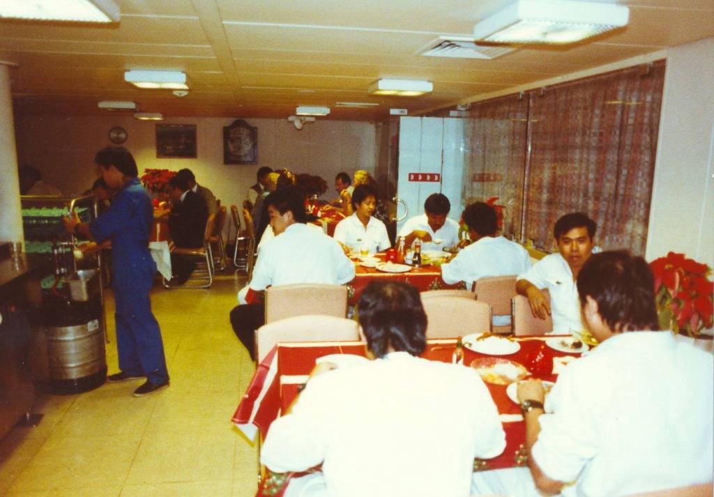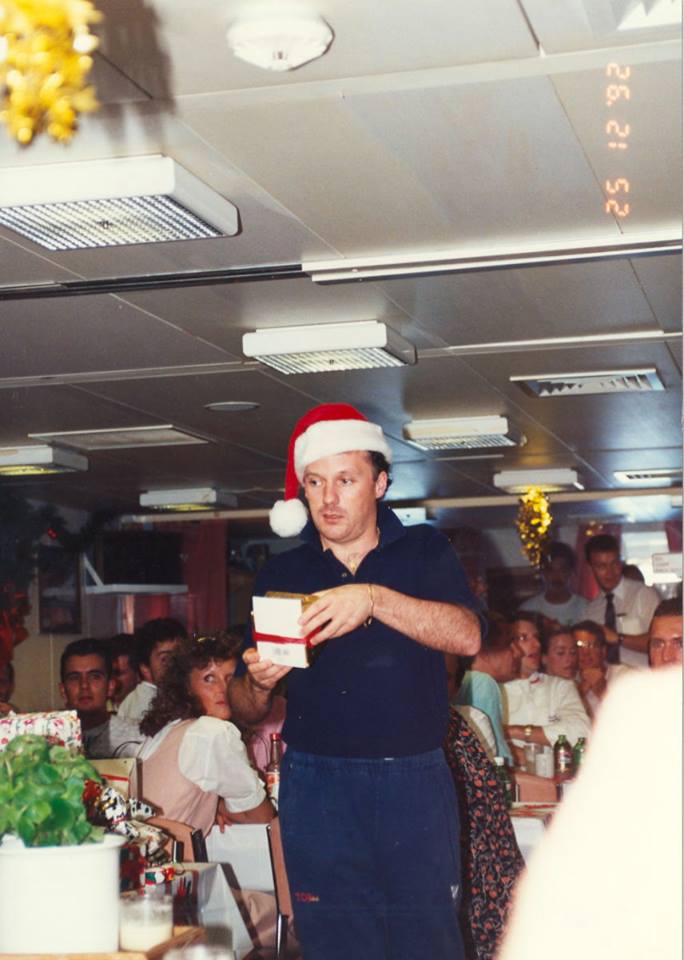 Slide show above: Pictures from some years ago (early 90s). Christmas Dinner for all Crew and Officers.