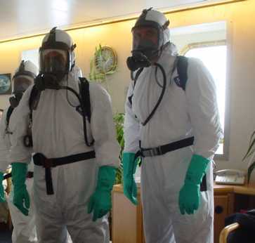 So, one day in early 2002, I think it was, we received a lot boxes with some stuff we had not ordered to the ship. After calling the Company they confirmed what it was. Later on they sent onboard a person to train us in how to get dressed in all the equipment, and how to go through the various routines and procedures. I tell you, when you see all the stuff, you will need some sort of instructions.