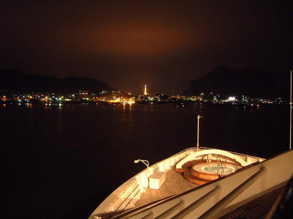 At anchor for the night, with Hon Gai town in front of us. Wonderful traveling memories.